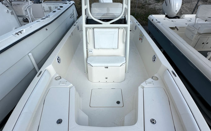 From skinny water to the open ocean deep water. The new SX2350 puts you there with comfort and style. Ergonomics rule the fishing side, with an abundance of storage, three large baitwells, and a command center that keeps you on top of everything. Style and efficiency rule the family side, with premium upholstery, a kicking sound system, and optional underwater accent lighting. The high gunwales, and a deeper, contemporary hull with a Carolina flare design, you and everyone on board will enjoy a safer and more stable ride. Expand your fishing territory and at the same time expand the fun with your family and friends. The SX2350 boat does great with both.